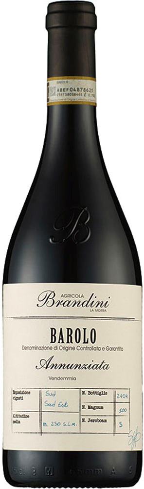 Vier Barolo-Lagen werden in der Agricola Brandini einzeln abgefüllt: Serralunga Meriame, La Morra Brandini, La Morra S. Anna, La Morra Annunziata. Die selektionierten Trauben aus der Lage La Morra Annunziata werden während dreier Wochen vergoren und reifen anschliessend 30 Monate in Holzfässern und weitere Monate in der Flasche. So entsteht ein mächtiger, kompakter Wein mit Potenzial für lange Jahre. In der Jugend getrunken, empfiehlt sich ein frühzeitiges Dekantieren, und in jeder Lebensphase das Servieren in grossen Kelchen.